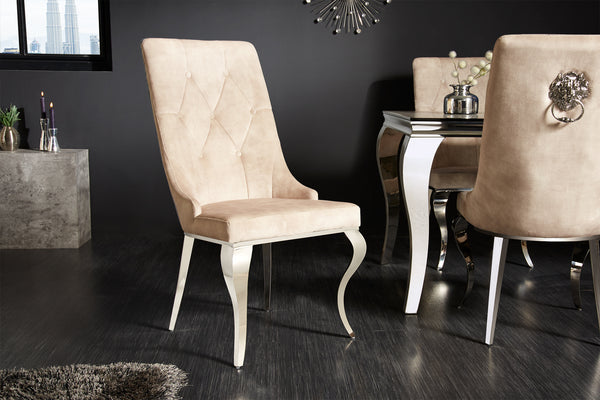 Eleganter Stuhl MODERN BAROCK Samt mit Knöpfen Edelstahlbeine