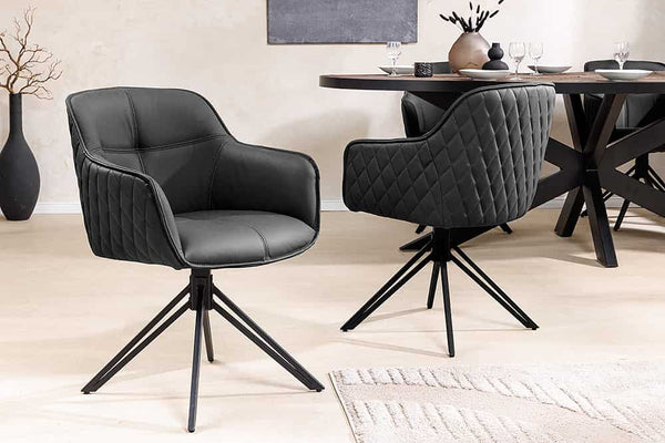 EUPHORIA Drehbarer Design Stuhl Echtleder Metallgestell mit Armlehne