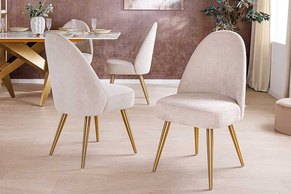 MIA CASA Retro Stuhl beige Cord champagner gold brushed Metall