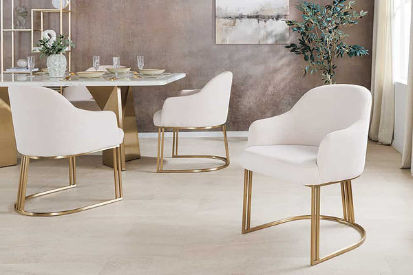 BOUTIQUE Skandinavischer Stuhl Strukturstoff brushed champagner gold Metall