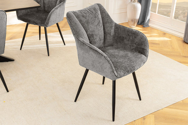 UNIQUE Drehbarer Retro Stuhl Chenille schwarzes Metallgestell mit Armlehne