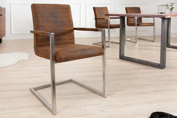 LOFT Industrial cantilever chair with armrest stainless steel frame