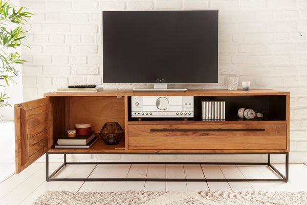 STRAIGHT Solid TV lowboard 165cm acacia wood natural black industrial style