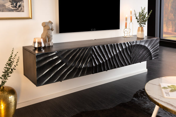SCORPION Solid TV board 160cm black mango wood hanging lowboard