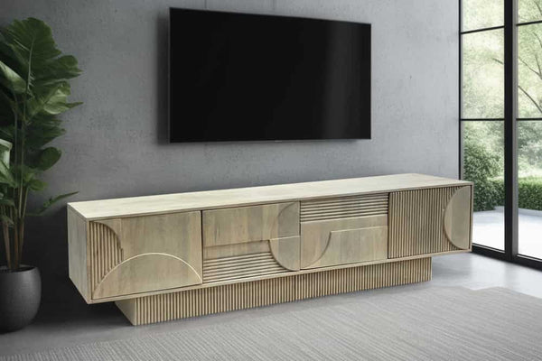 RELIEF Solid TV lowboard 150cm Sheesham wood with elaborate front