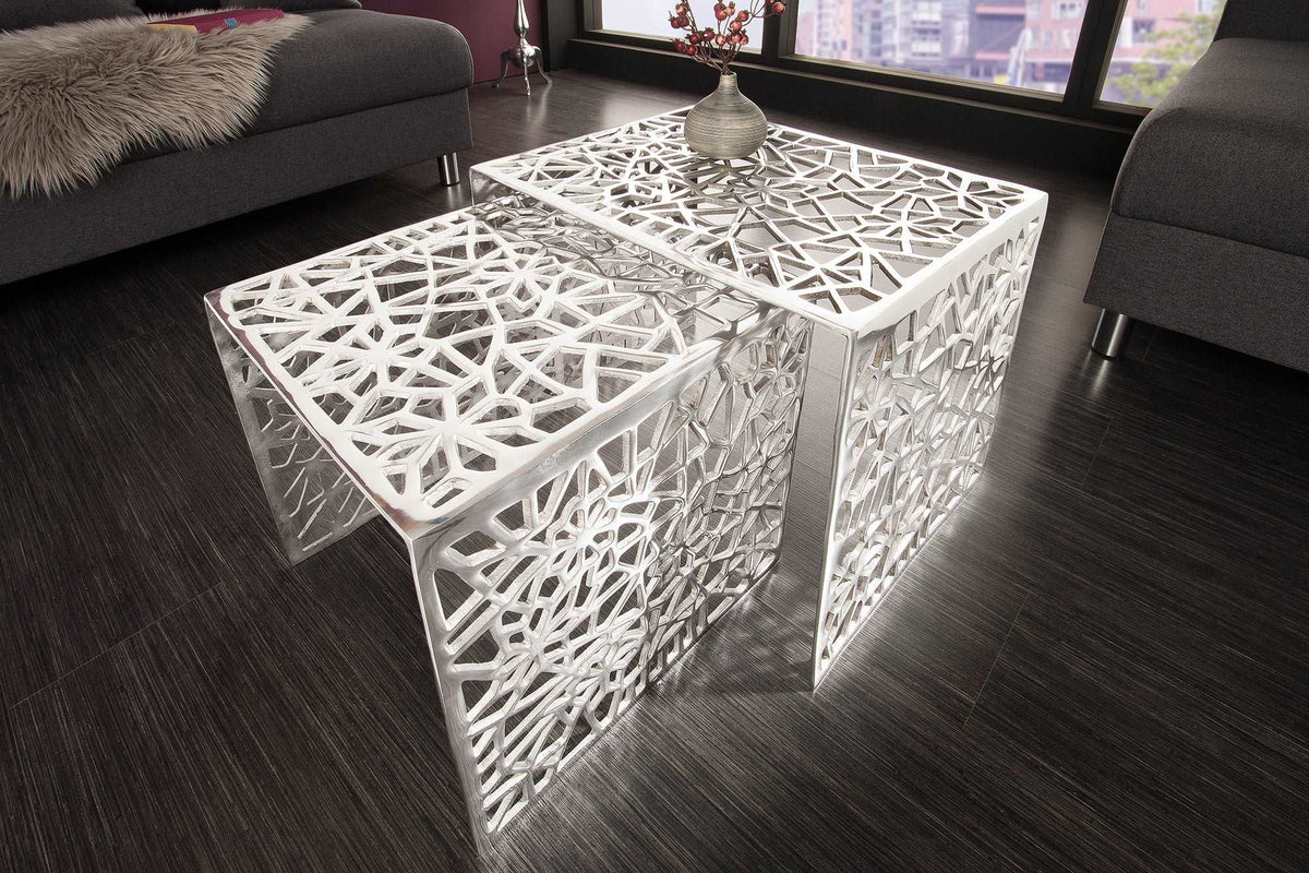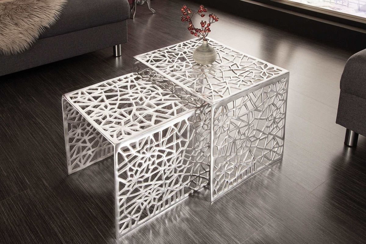 ABSTRACT Handcrafted coffee table 49cm set of 2 silver in Gap design