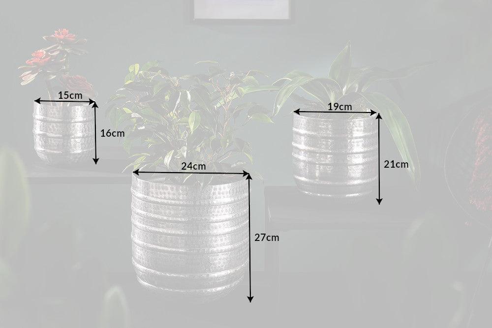 3er Set Blumentopf ORIENT 25/20/15cm Metall Hammerschlag Design