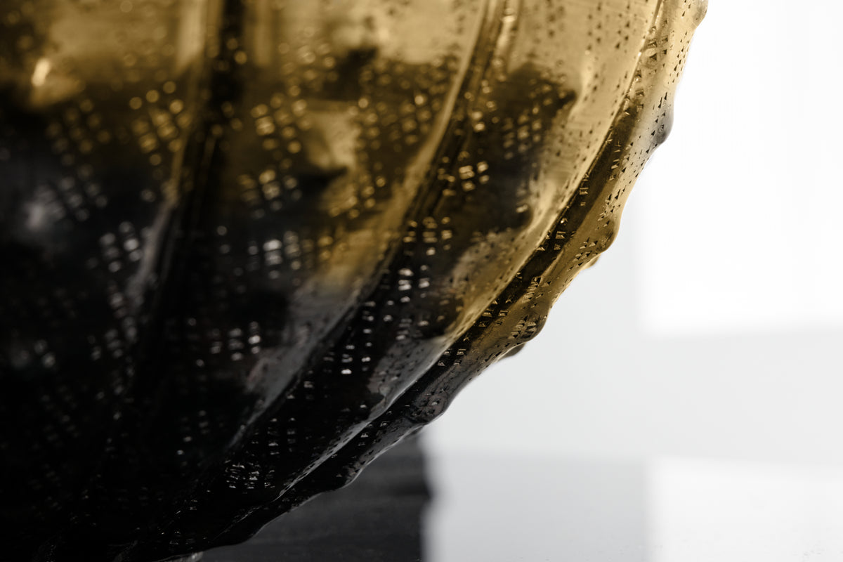 - goldene Kugelvase mit extravaganter Oberfläche
