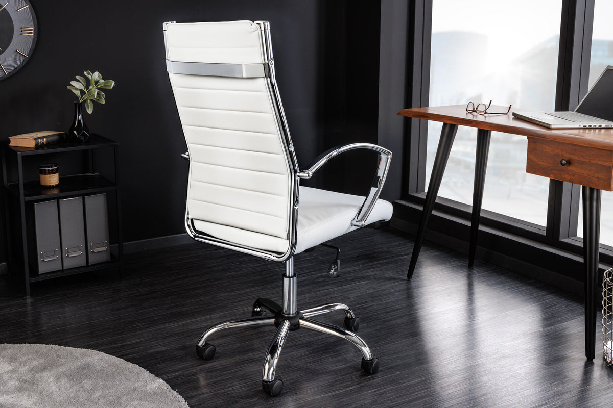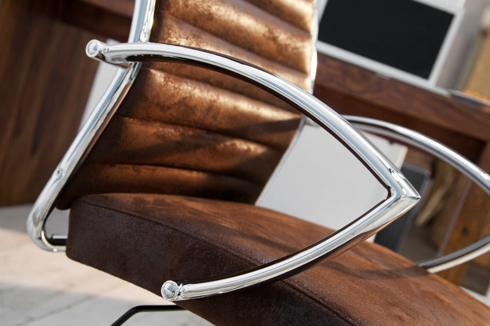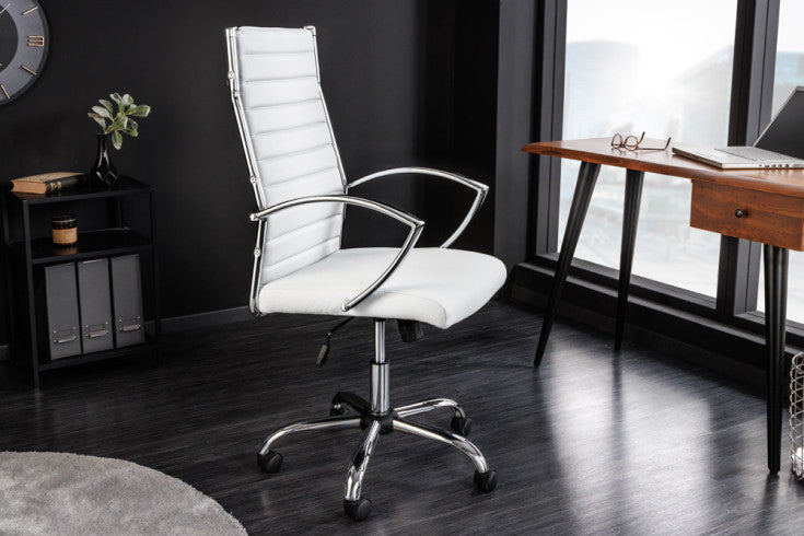 Schreibtischstühle müssen hohen Ansprüchen genügen - schließlich verbringen wir viel Zeit mit ihnen. Dieser exklusive Bürostuhl BIG DEAL mit Armlehnen aus Chrom sieht nicht nur edel aus, er ist ein hochwertiger Designklassiker aus Microfaser mit einem verchromten und drehbaren Kreuzgestell. Zudem ist er höhenverstellbar – so kannst Du dir diesen Bürostuhl individuell nach Deinen Bedürfnissen einstellen.
