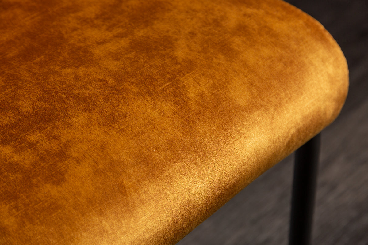 - zeitloser Freischwinger mit einem senfgelben Samtbezug