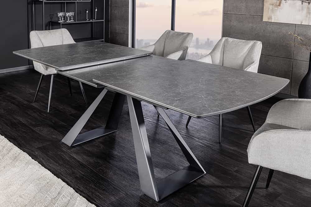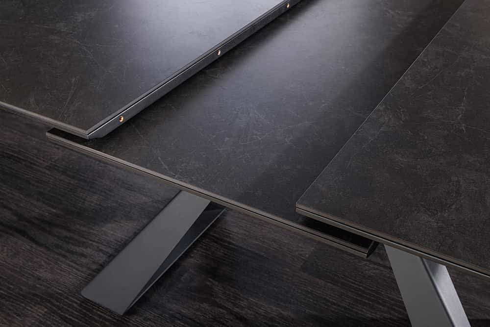 - ausziehbarer Esstisch mit hochwertiger Keramik-Tischplatte in edlem Graphit