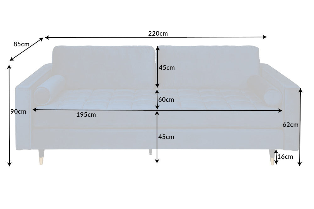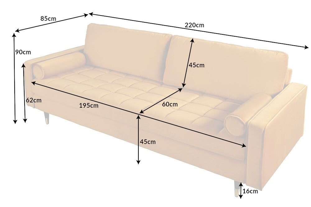 Design 3-Sitzer Sofa COZY VELVET 220cm Samt Federkern Lounge