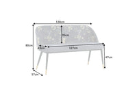 Das extravagante Blumenmuster und die goldenen Fußkappen geben dieser Sitzgelegenheit einen wahren Retro-Look. Trotz dessen lässt sich die Bank wunderbar mit anderen schlichteren Möbeln kombinieren. Besonders schön wirkt die Bank in Deinem zuhause, wenn Du sie mit einigen stilvoll eingesetzten goldenen Wohn-Accessoires kombinierst. Auch schwarze Elemente passen hervorragend – versuche es doch mit einer Lampe oder einem Sideboard!