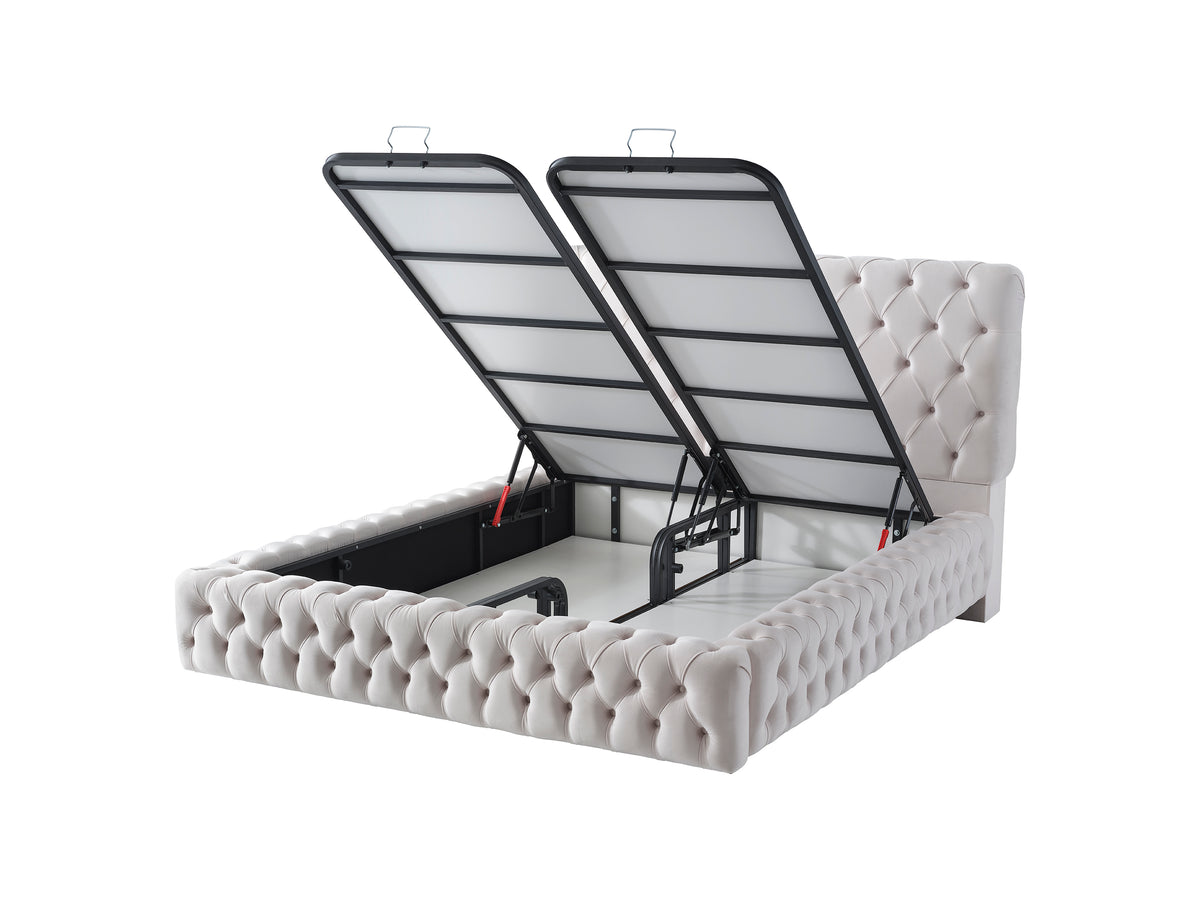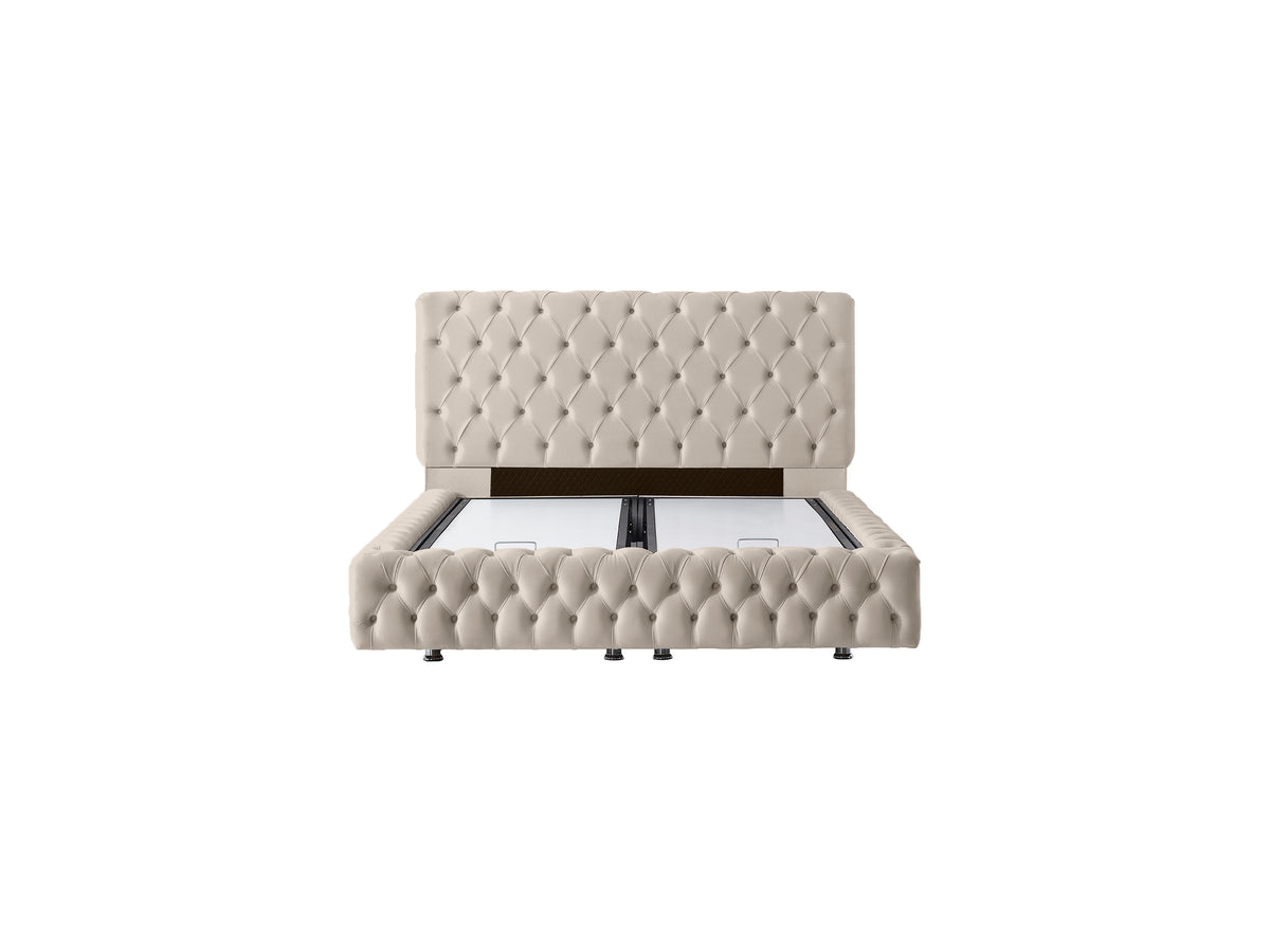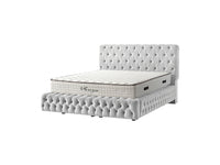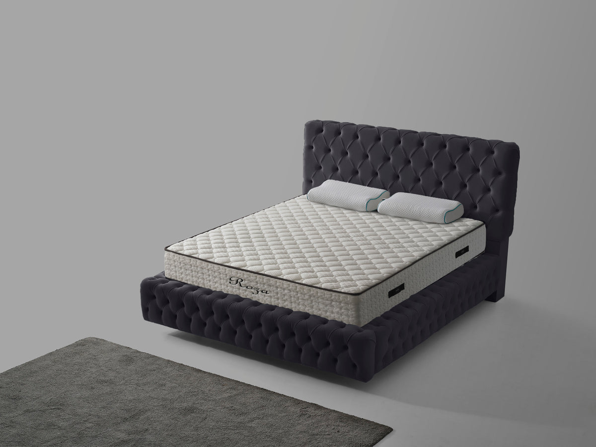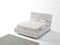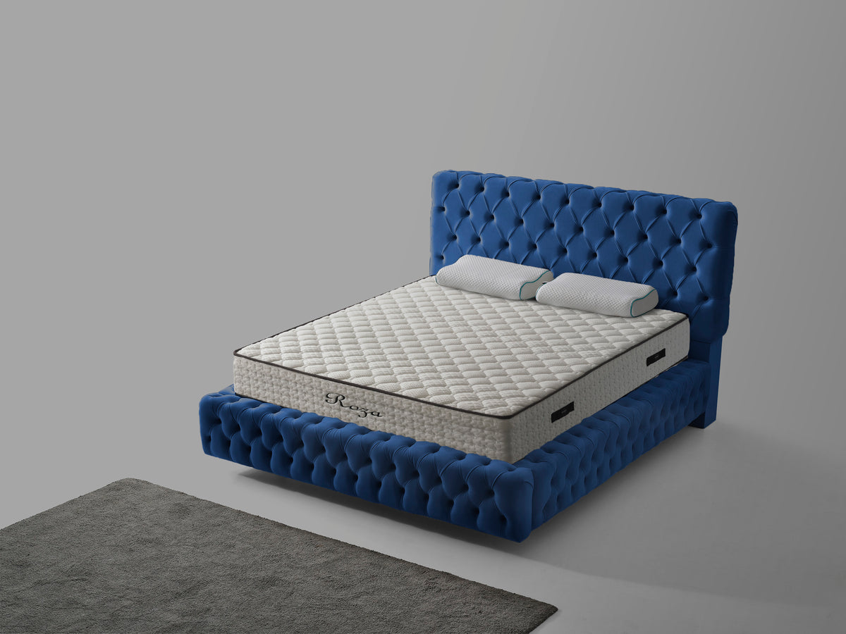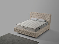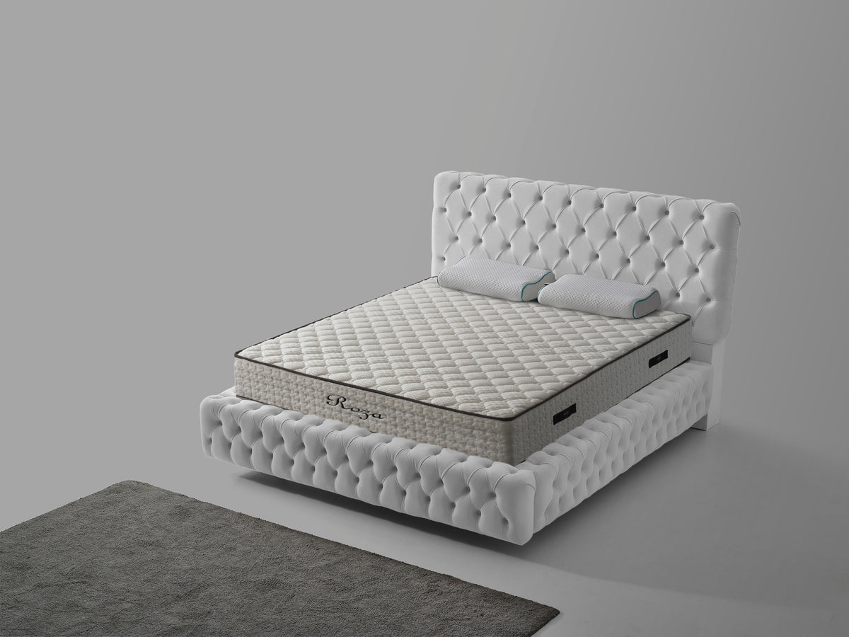- Das Boxspringbett ist aus stabilen und extrem langlebigen Materialien gefertigt und wird standardmäßig mit einem Aufbewahrungskasten und einer PREMIUM-Matratze geliefert.