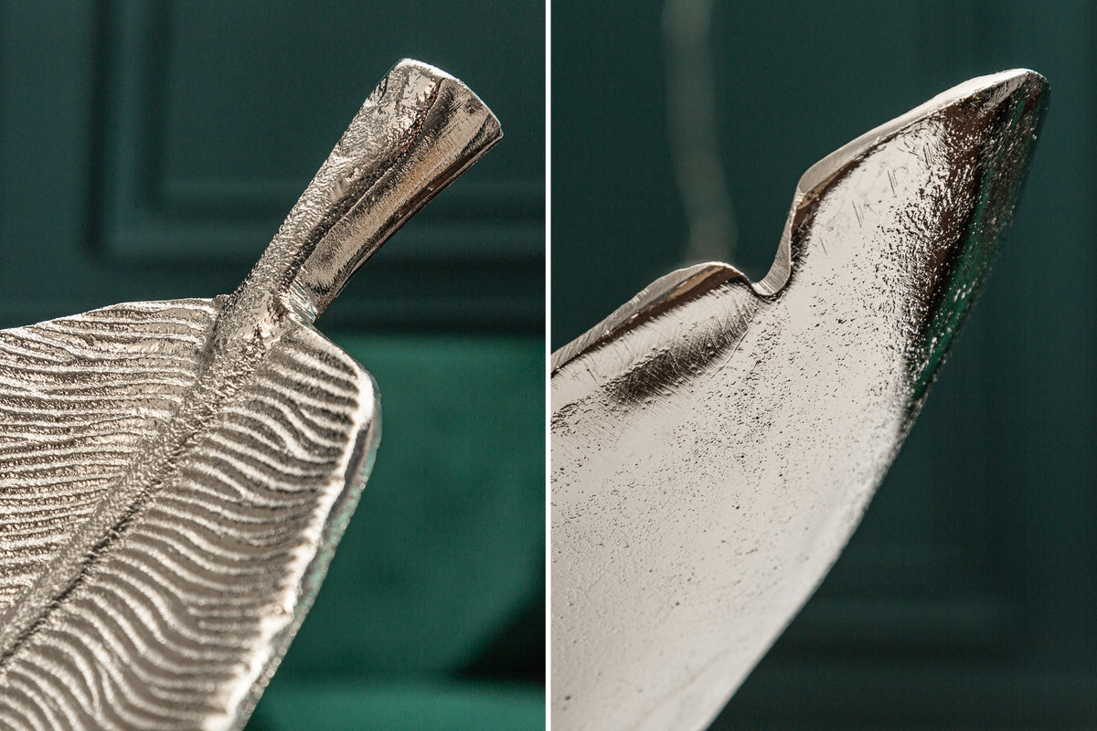 Design Deko Schale SILVER LEAF 62cm Blatt Design Metall Handarbeit