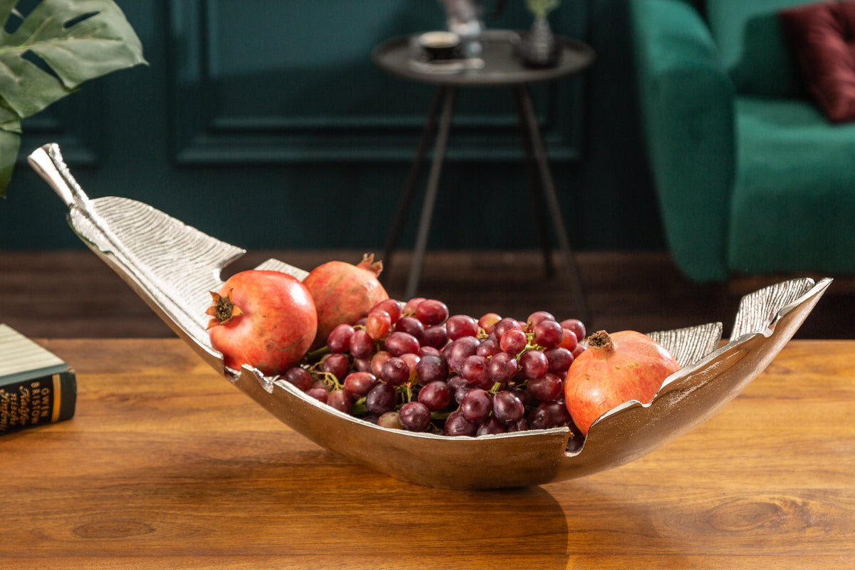 Silberne Möbel und Wohn-Accessoires sind perfekt dafür geeignet, um Deinem zu Hause einen besonders eleganten Charakter zu verleihen. Unsere dekorativ Schale bildete da keine Ausnahme! Detailgetreu einem großen Blatt nachempfunden zieht sie sofort alle Blicke auf sich und kann wunderbar vielseitig genutzt werden – probiere es aus!