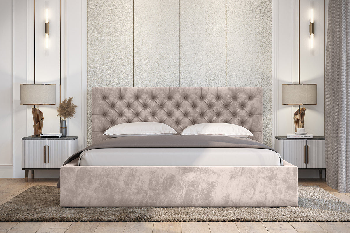 Beruhigendes Design: Das Polsterbett Chester ist die Ruhe selbst.Der samtbezogene Rahmen und das Kopfteil mit Chesterfield-Optik lassen dein ganzes Schlafzimmer ruhiger wirken. Optisch, akustisch und haptisch sorgt dieses Modell für eine unvergleichliche Atmosphäre. So kannst du dich leichter entspannten und mit mehr Energie den Tag beginnen.