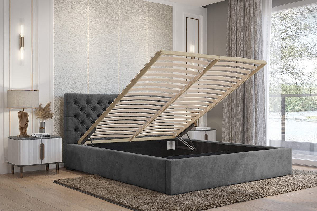 Versteckter Stauraum: Das Modell Chester wird dich aber auch mit seinem praktischen Stauraum begeistern: Den Lattenrost kannst du einfach hochklappen. Damit eröffnet sich dir der großzügige Stauraum im Bettkasten: Bettwäsche, Winterkleidung oder die Tagesdecke sind hier in Sekunden ordentlich verräumt. Das erleichtert deinen Alltag und steigert den Wohlfühlfaktor in deinem Schlafzimmer.