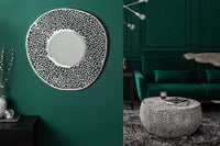 - außergewöhnlicher Couchtisch mit extravaganter, silberner Oberfläche