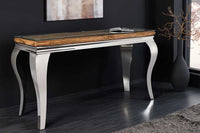 MODERN BAROCK Design Konsolentisch 140cm natur chrom Teakholz Edelstahl Glasplatte