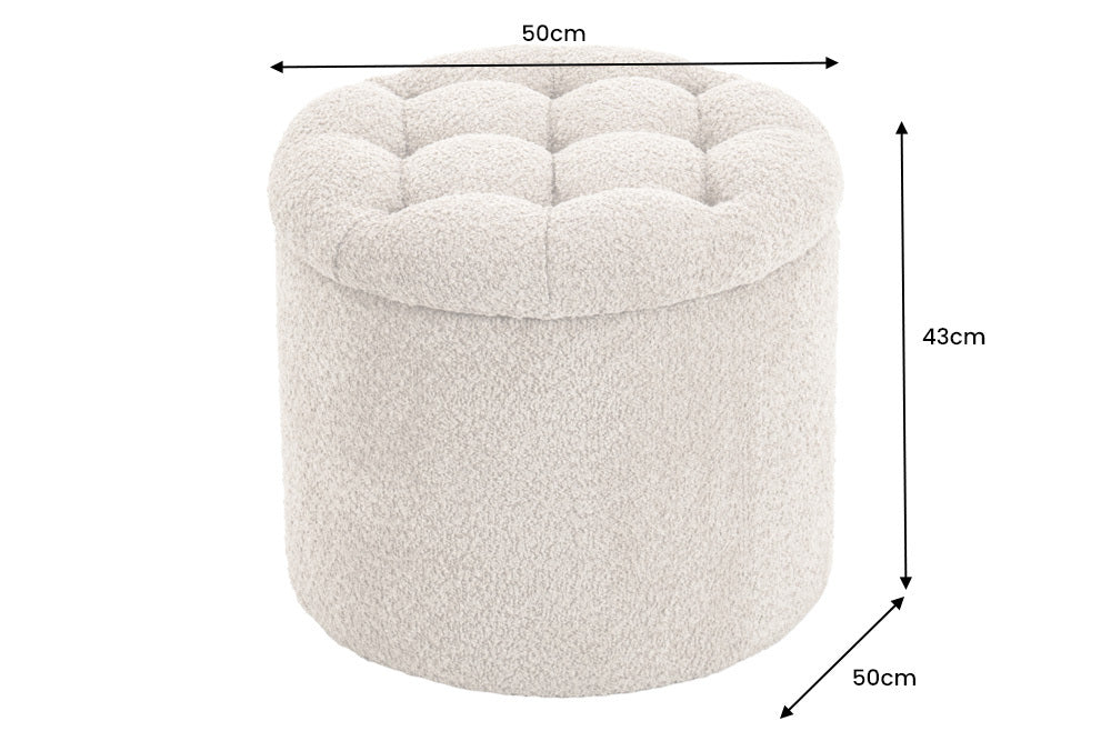 Runder Hocker MODERN BAROCK 50cm champagner Bouclé mit Stauraum