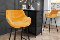 Wenn Du auf der Suche nach einem besonders bequemen Barstuhl als Ergänzung Deiner Hausbar bist, dann solltest Du jetzt einmal genauer hinschauen. Unser komfortabler Retro-Klassiker mit extra dicker Polsterung der Sitz- und Rückenfläche begeistert mit seinem zeitlosen und angesagten Design. Die schwarzen Metallbeine bilden eine tollen Ergänzung zu der Sitzschale mit edlem Samtbezug.