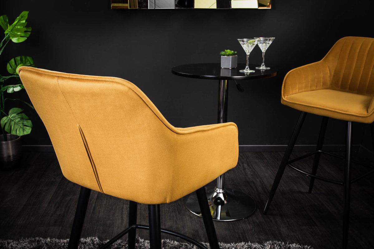 Du wünschst Dir ein bisschen Glamour für Deine Hausbar? Mit unseren TURIN Barstühlen ist dies ein Leichtes! Das zeitlose Design des Stuhls lässt sich in jedes Ambiente problemlos integrieren, erhält durch den Samtbezug jedoch einen Hauch von Extravaganz. Abgerundet wird der Look durch die Ziersteppungen, die entlang der gemütlich gepolsterten Rückenlehne verläuft. Damit es auch bei langen Cocktail Abenden komfortabel bleibt, besitzt der Barhocker zwei Armlehnen und eine Fußablage.